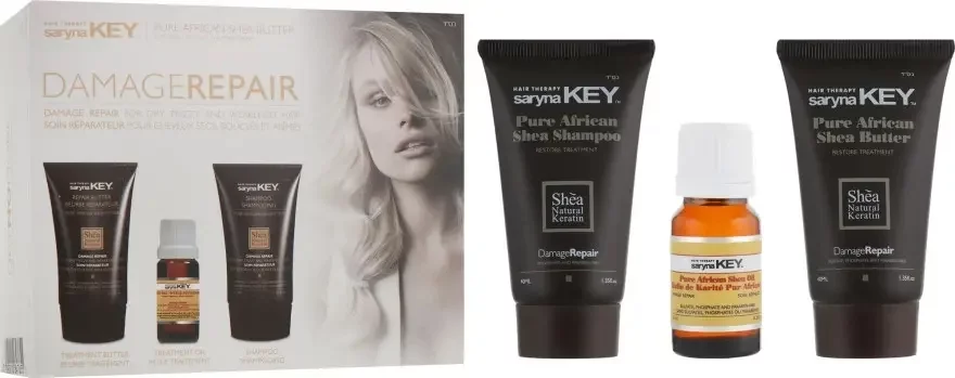 Набор для восстановления волос Saryna Key Damage Repair в составе: шампунь 40 мл, маска 40 мл, масло 10 мл.