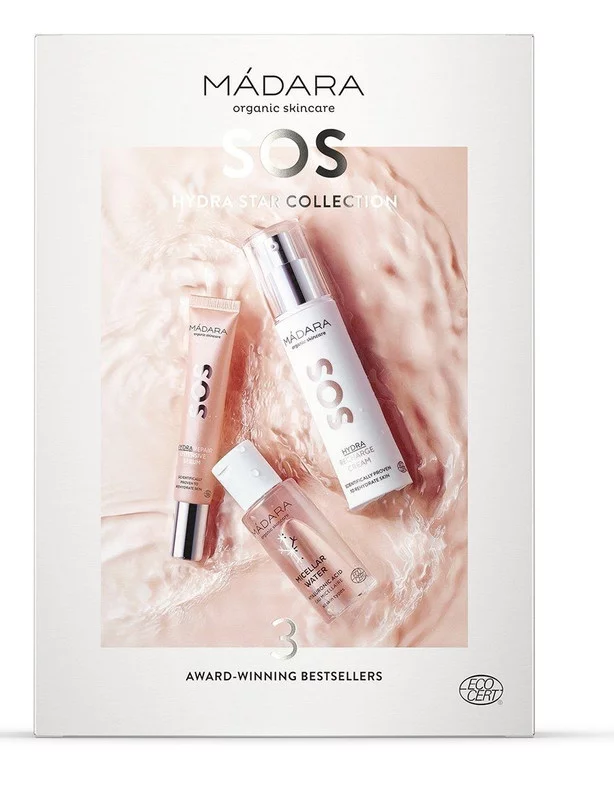 Самые любимые продукты, 3 бестселлера SOS SOLUTION для всех типов кожи :SOS HYDRA RECHARGE CREAM Укрепляет кожный барьер и удерживает влагу, VEGAN / NATURAL & ORGANIC CERTIFIED / 50 мл MICELLAR WATER Удаляет макияж и загрязнения без нарушения водного баланса кожи. SOS HYDRA REPAIR INTENSIVE SERUM Мгновенно восстанавливает и успокаивает напряженную и обезвоженную кожу.