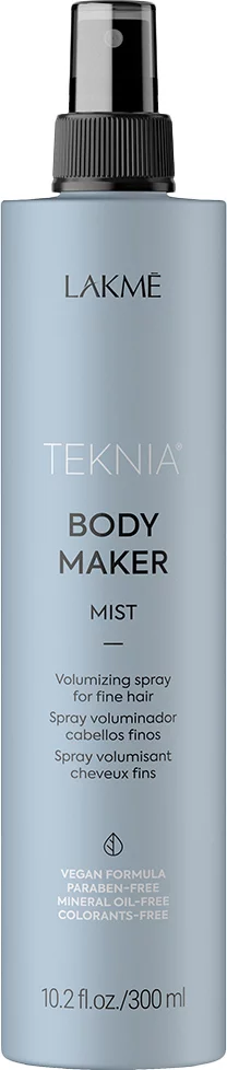 Спрей для объема тонких волос Lakme Teknia Body Maker Mist восстанавливает волокна волос изнутри, обеспечивая длительный эффект. Волосы более плотные, объемные и блестящие.
