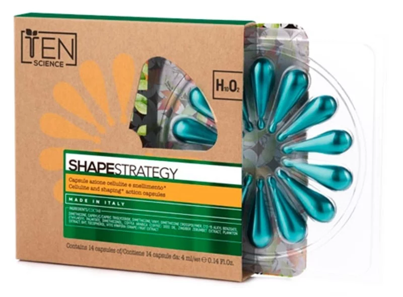 Мощные антицеллюлитные шейпинг-капсулы TEN Shape Strategy Cellulite & Shaping Capsules имеют жидкую консистенцию и моментально впитываются в кожу, воздействуя на проблемные места. Средство в капсулах способствует похудению. Оно улучшает кровообращение, насыщает клетки кислородом и ускоряет метаболизм. Насыщенная натуральными экстрактами формула оказывает мощное влияние на жировые отложения в теле, помогает им растворяться и выходить из организма. Используя концентрированное средство от Ten Science ваш организм очищается от шлаков, а кожа подтягивается. Уменьшается отечность и застой излишней воды в организме. А карнитин способствует росту мышц, выносливости и уменьшает боли в мышцах.