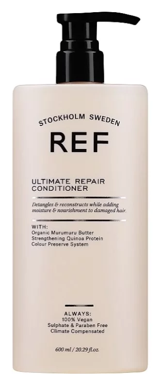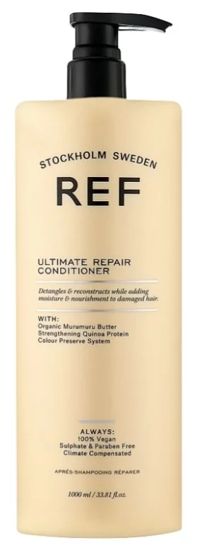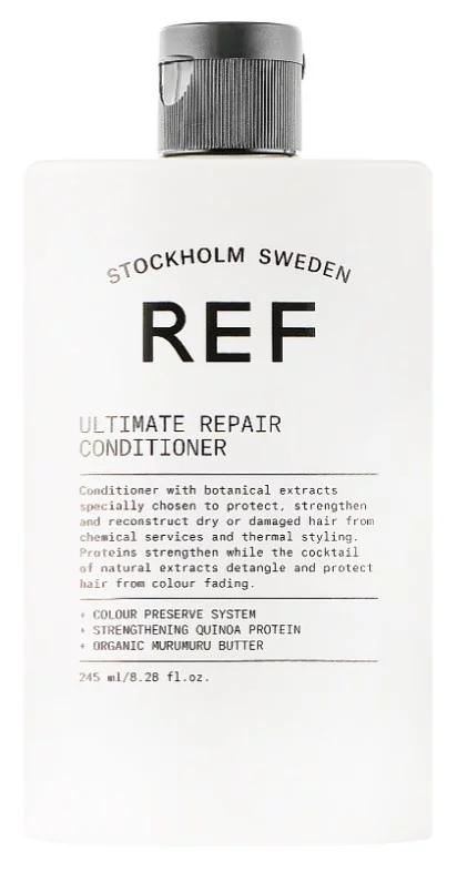 Восстановительный кондиционер бренда REF создан для всех типов волос, но особенно рекомендован для реконструкции и лечения сухих, поврежденных термоукладками или химически обработанных волос. Секрет средства у комплески протеинов киноа и натуральных экстрактов, обеспечивающих глубокую гидратацию, устраняют сухость и возвращают волосам живой блеск.