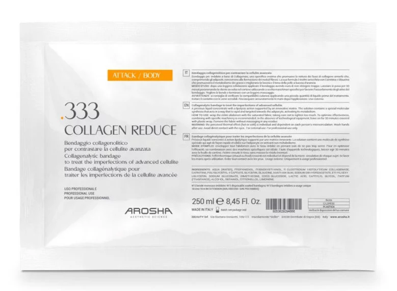 Предварительно смоченный бинт на основе коллагеназы, способствующий разрыву аморфных пучков коллагена, образующих фиброзные узелки. Его формула также обогащена карнитином и глауцином, которые способствуют метаболизму жиров и улучшают упругость и тон кожи и уменьшают «апельсиновую корку».