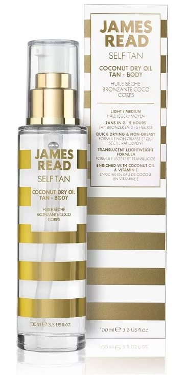 Сухое кокосовое масло с эффектом загара James Read Coconut Dry Oil Tan Body моментально высыхает и не липнет к рукам и одежде. Входящие в состав витамин Е и кокосовое масло питают и увлажняют кожу, а антиоксидантный комплекс обеспечивает защиту от внешних воздействий окружающей среды. Подходит для кожи любого тона.