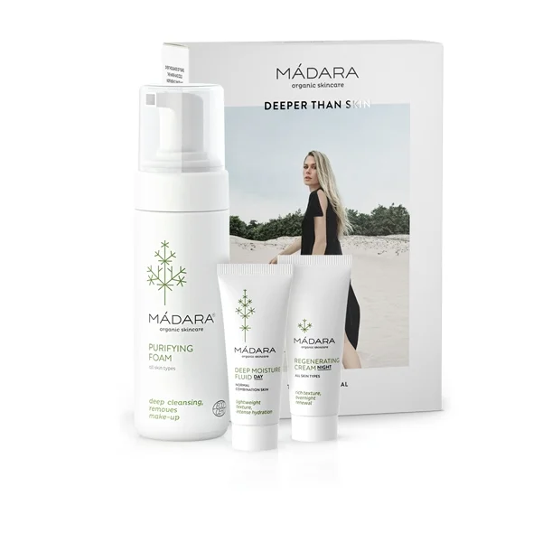 Набор Deeper than skin подходит для все типов кожи. Он состоит из: