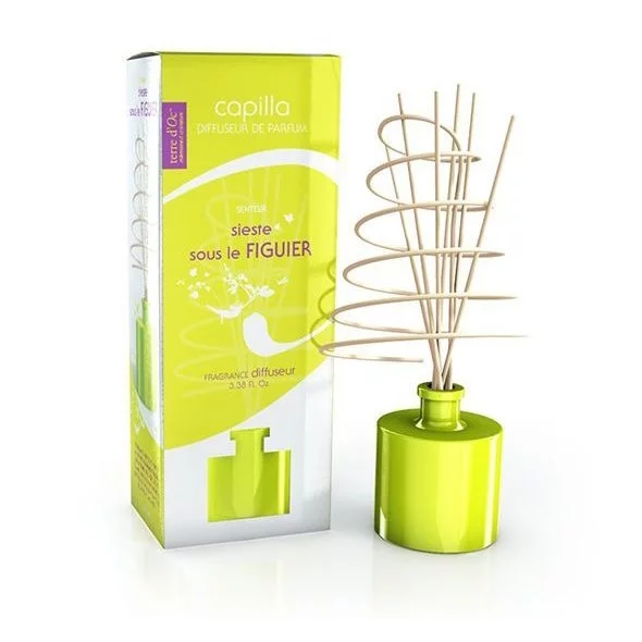 Органический интерьерный ароматизатор воздуха «Сиеста под смоковницей» Terre d’Oc Fragrance Diffuser представляет собой набор из флакона с эфирными маслами и бамбуковых палочек. Он равномерно наполняет пространство ароматом благоухающих цветов, сочных трав и спелых фруктов, окутывая сладкими нотами инжира и дикого персика, дополненных теплыми древесными аккордами. Натуральный ароматизатор воздуха Terre d’Oc Fragrance Diffuser Siesta under the Fig-tree поможет создать атмосферу уюта и комфорта, подарит ощущение внутренней гармонии, снимет усталость и поднимет настроение. Кроме того, он эффективно нейтрализует неприятные запахи и гармонично дополнит любой интерьер. Секрет работы диффузора кроется в капиллярном строении бамбуковых палочек: парфюмированная жидкость наполняет помещение ароматом, поднимаясь из бутылочки до кончиков прутьев и испаряясь с их поверхности.