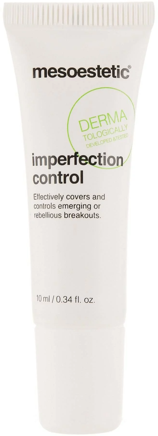 Крем Mesoestetic Imperfection Control корректирует и маскирует прыщи, адаптируется к тону кожи. Средство содержит активные компоненты, которые эффективно борются с причинами возникновения несовершенств. Препарат глубоко очищает проблемные участки, способствует удалению омертвевших клеток, обладает бактерицидными свойствами, регулирует выделение себума. Кроме того, он снимает воспаление, уменьшает покраснение, активизирует процесс заживления.