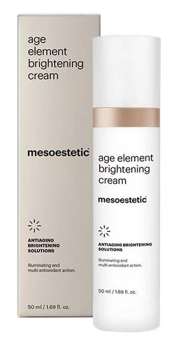 Осветляющий крем Mesoestetic Age Element Brightening Cream устраняет первые признаки хроно- и фотостарения, морщины, признаки усталости и темные пятна, придавая коже сияние. Таким образом, благодаря своему антиоксидантному действию он смягчает признаки преждевременного старения и оживляет кожу, одновременно восстанавливая более увлажненный и однородный вид.