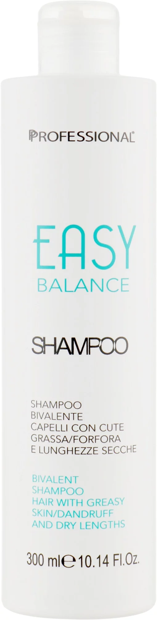 Шампунь бівалентний Easy Balance Professional очищає волосся та шкіру голови. Сприяє відновленню рН-балансу шкіри, нормалізуючи функції та секрецію сальних залоз. Протидіяє утворенню лупи, тонізує, зволожує, усуває лущення та свербіж.