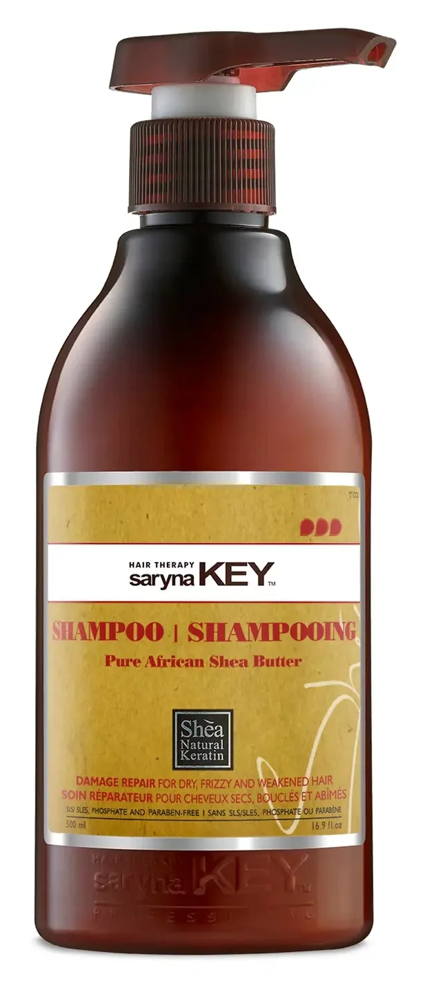 Основний шампунь Saryna Key Damage Repair для відновлення пошкодженого волосся є найновіша формула на основі олії ши, яка глибоко відновлює волосся від коренів до кінчиків. Шампунь делікатно очищає шкіру голови, ідеально підходить для пошкодженого волосся, створює захисний шар на поверхні пасм, який захищає його від негативного впливу, у тому числі й високих температур. Продукт містить високу концентрацію вітамінів А, Е та F, а також амінокислоти та кератин, і є унікальним комплексом з відновлення ламких, пошкоджених та сухих пасм. Кератин надає м'якість, еластичність та дзеркальний блиск волоссю, тоді як амінокислоти допомагають у виробленні протеїнів, які пом'якшують, живлять та зміцнюють структуру локонів.