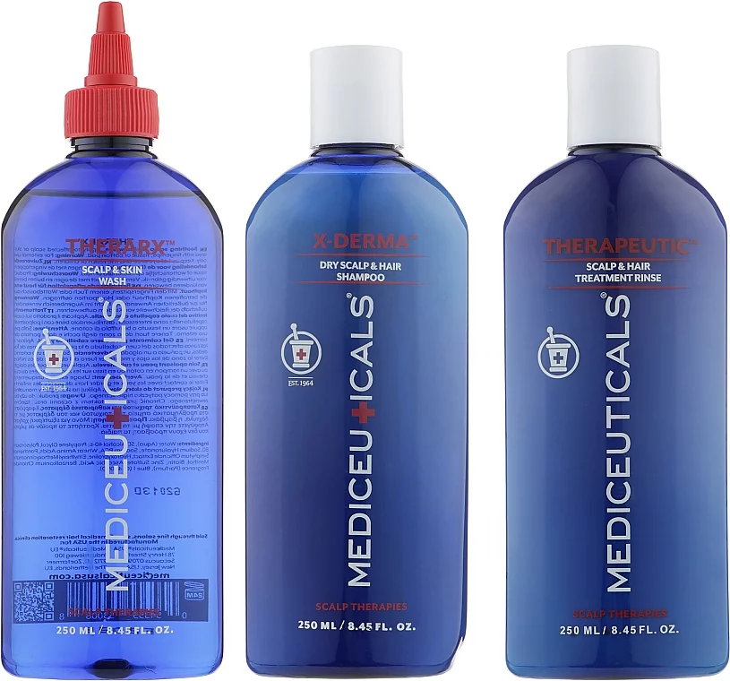 Помийте голову відповідним шампунем Mediceuticals. Нанесіть Therapeutic на підсушене рушником волосся та шкіру голови, залиште на 2-3 хвилини, потім ретельно змийте.