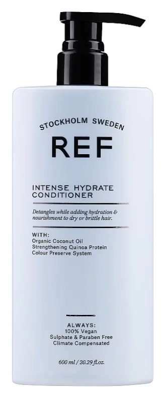 Зволожуючий кондиціонер бренду REF забезпечує волоссю інтенсивну гідратацію та дозволяє забути про сухість. В основі збалансованої формули – органічні олія кокосу та олія бергамота, а також протеїни кіноа. Незважаючи на те, що до складу входять поживні компоненти, діє без ефекту обтяження. Забезпечте локонам дбайливий, ефективний і натуральний догляд, і вони перетворяться: кондиціонер відновлює пошкоджені ділянки волосяних стрижнів, зміцнює і глибоко зволожує волосся, робить його шовковистим, супергладеньким, м'яким і блискучим.