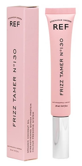 Туш для фіксації волосся Frizz Tamer №130 від бренду REF (Швеція) є максимально натуральним продуктом. Вона не тільки допомагає зафіксувати волосся під час укладання, але й доглядає їх. Ця функція реалізується завдяки тому, що в її формулі містяться компоненти природного походження – органічна кокосова олія, протеїни кіноа, рицинова олія, вітамін Е (токоферол) та інші поживні речовини.