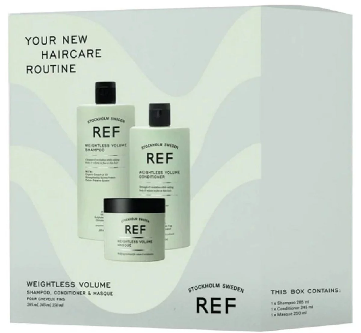 Набір Care Routine – Volume складається із засобів, спеціально підібраних для захисту, зміцнення та покращення структури тонкого або негустого волосся. Формула продуктів, збагачена протеїнами кіноа, оліями грейпфрута, абрикосових кісточок та насіння жожоба відновлює силу та слухняність волосся. Кошти м'яко очищають, кондиціонують і живлять волосся, додаючи обсяг від коріння до кінчиків. Після застосування волосся стає шовковистим, блискучим, зволоженим і об'ємним.