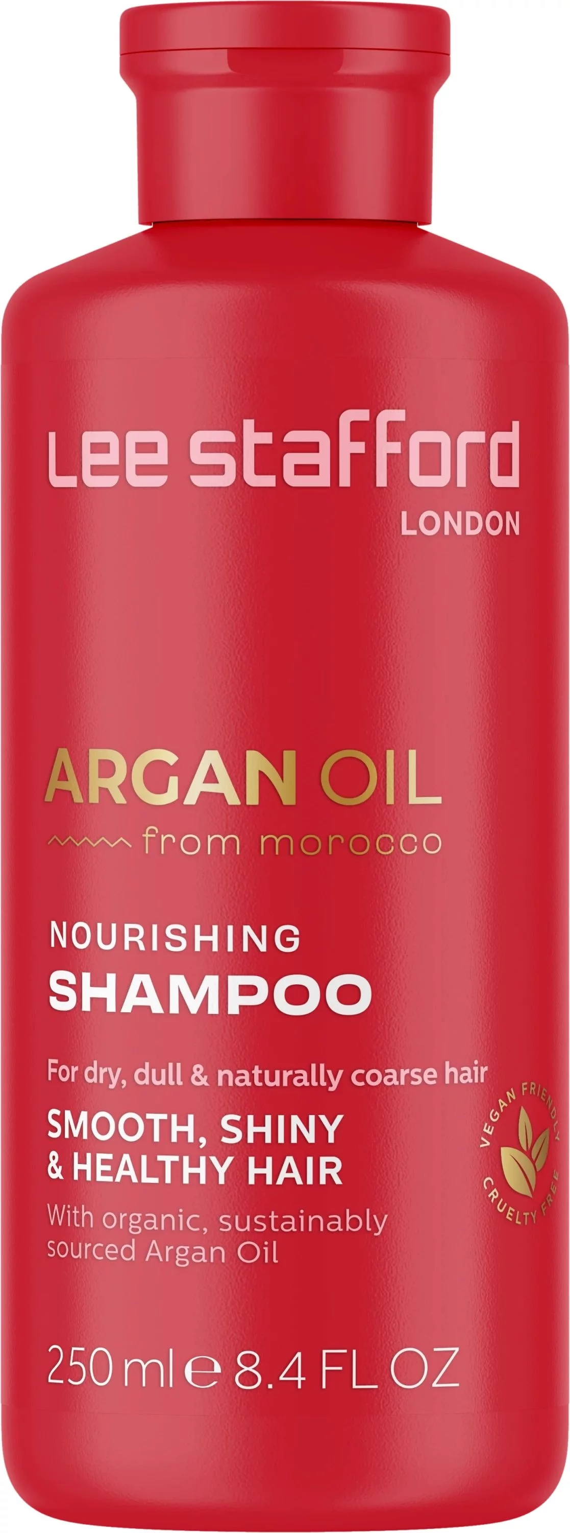 Розкішний і глибоко поживний шампунь Lee Stafford з аргановим маслом, отриманим з екологічно чистих джерел у Марокко, ідеально підходить для сухого та пошкодженого волосся. Його розумна формула м'яко очищає, не позбавляючи волосся та шкіри голови дорогоцінних зволожуючих олій. Завдяки цінним зволожуючим компонентам шампунь зволожує пасма, роблячи їх здоровими та блискучими.