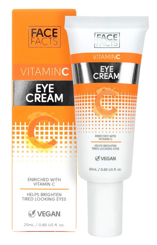 Освітліть втомлені очі за допомогою крему для очей Face Facts з вітаміном С. Цей ніжний крем, збагачений вітаміном С, глибоко зволожує та освітлює шкіру. Ідеальна щоденна підготовка перед нанесенням макіяжу. Формула без парабенів.