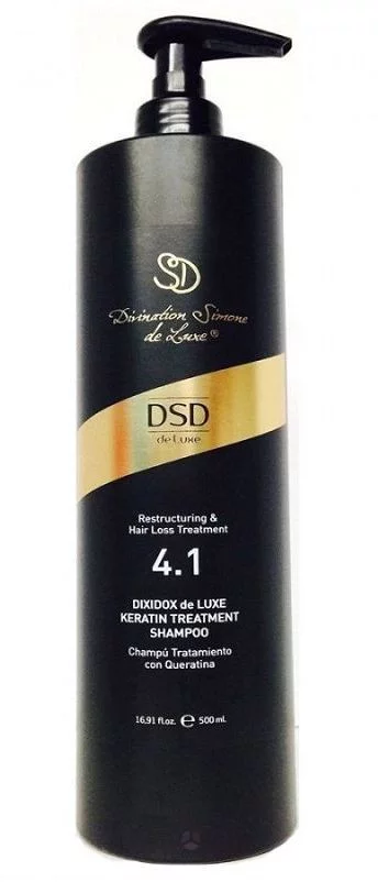 Шампунь, що відновлює, з кератином 4.1 Divination Simone De Luxe Dixidox DeLuxe Keratin Treatment Shampoo допоможе Вам швидко позбавитися від випадання волосся і кінчиків, що січуться. Ви забудете про ламкість і тьмяний колір. Ви знайдете волосся вашої мрії, повні сили та здоров'я. Даний шампунь збагатить волосся кератином, екстрактами дріжджів та кінського каштана, піджививши та відновивши його. Продукт зволожить і оздоровить шкіру голови, перемігши пересихання, свербіж та лущення. Шкірний покрив пом'якшиться, ви відчуєте свіжість та комфорт. Придбайте відновлюючий шампунь з кератином Диксидокс Де Люкс від Divination Simone De Luxe, він зробить ваше волосся прикладом досконалості, абсолютно здоровим і густим, об'ємним і сяючим!
