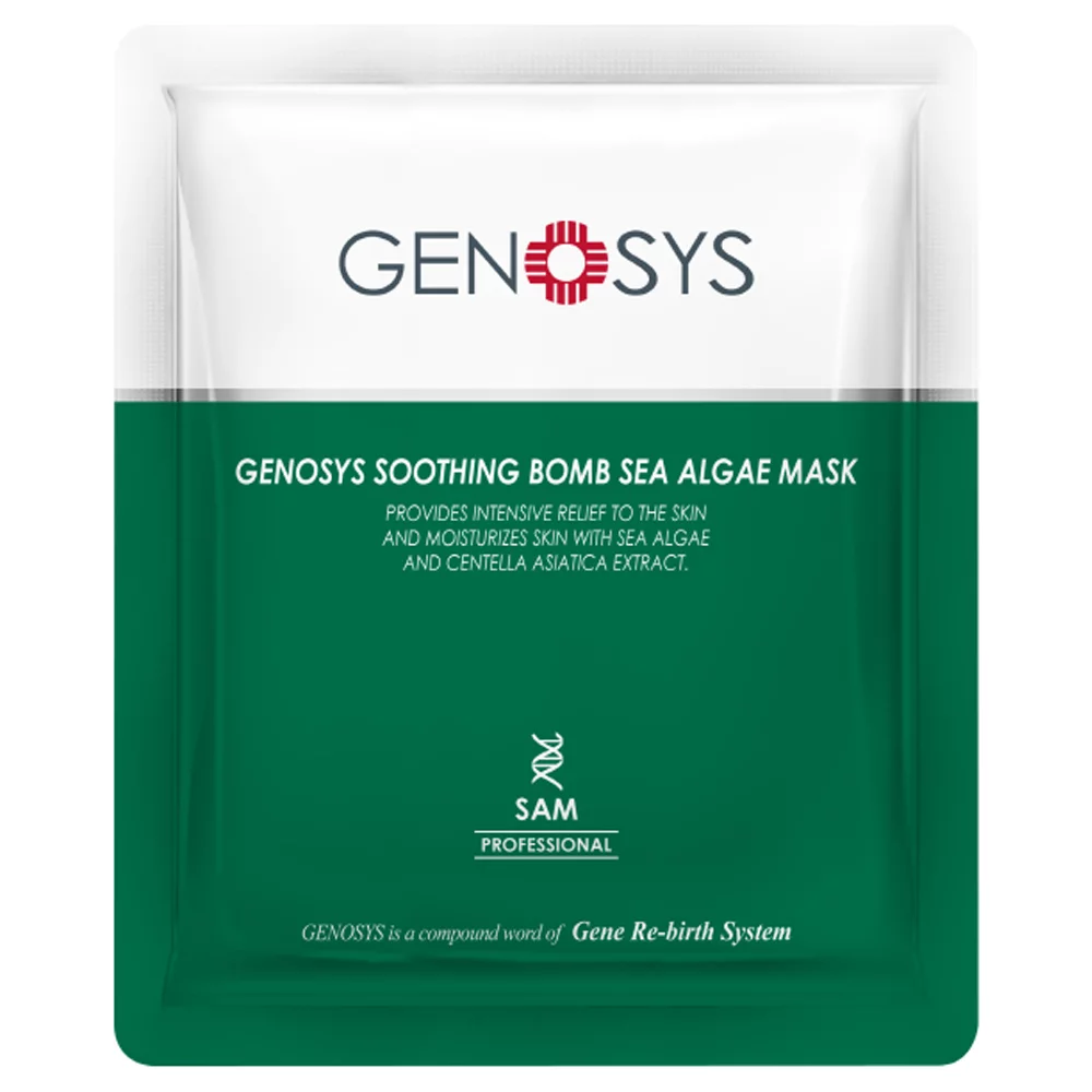 Заспокійлива маска з морськими водоростями Soothing Bomb Sea Algae Mask від бренду Genosys відмінно тонізує та гальмує процес в'янення епідермісу. Продукт має освітлювальну дію і вирівнює тон обличчя.