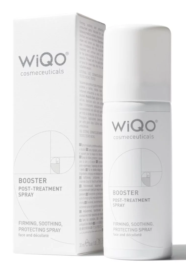 WiQo Booster Post-treatment spray заспокійливий спрей показаний для застосування після амбулаторних процедур на обличчі, шиї та зоні декольте.