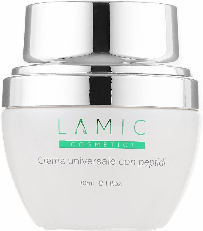Універсальний крем Crema universale con peptidi з пептидами стимулює утворення біологічно активних молекул, що беруть участь в адгезії шарів шкіри та створенні нових опорних структур. Завдяки низькомолекулярній гіалуроновій кислоті стимулює утворення колагену та волокон, що зміцнюють шкіру. Підвищує м'якість та еластичність, запобігає утворенню зморшок та сухості.